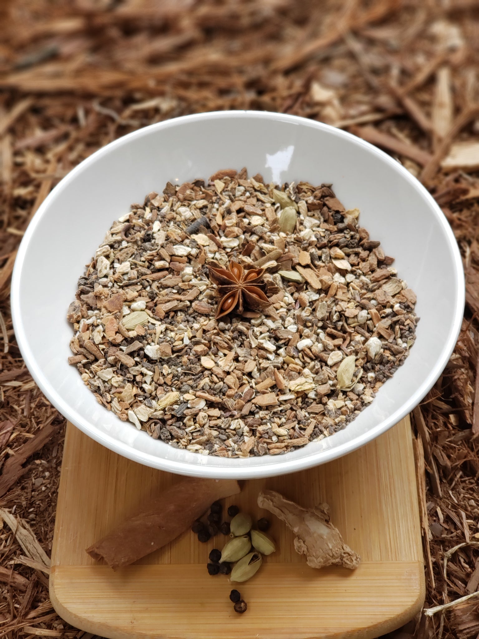 • Digestive Tract Healing: With cardamom and ginger as key players, our Herbal Chai supports healthy digestion and helps alleviate gastrointestinal discomfort.